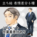 立ち絵素材_フリー素材イラスト_全身_男性_太ったおじさん_スーツ_作業着_青_シルエット